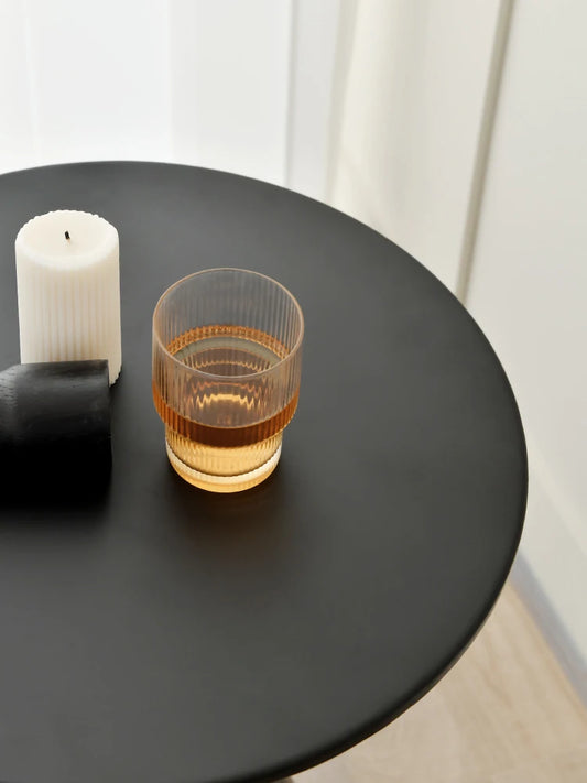 Sleek And Modern Round Coffee Table With Eye-catching Relief Design; Black - As Pic